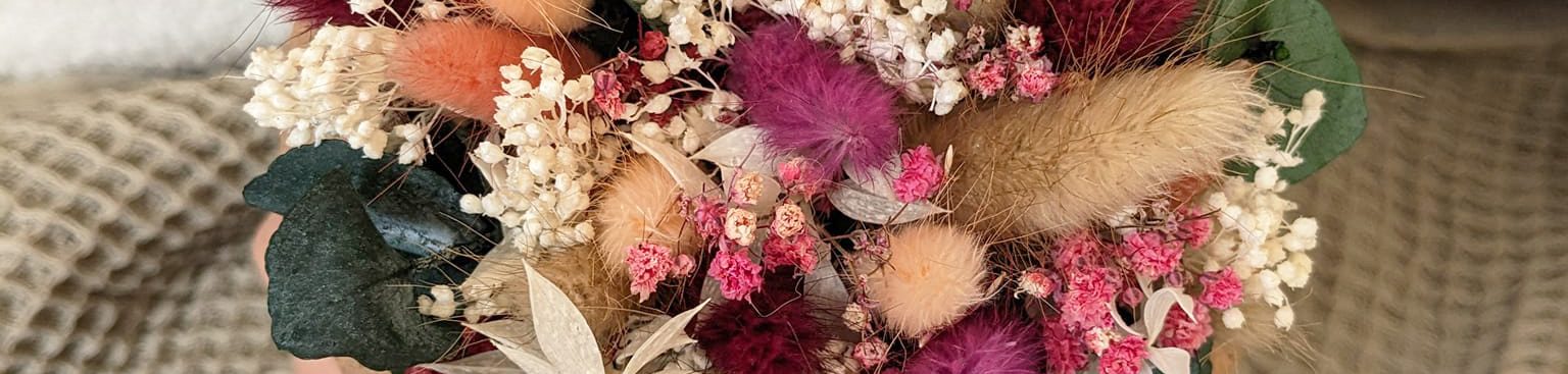 Intégrée dans un contenant 100% naturel, ces différentes compositions de fleurs séchées apportera légèreté et délicatesse à votre décoration d’intérieure, d’évènement ou tout simplement pour habiller vos tables de restaurants🍽️.