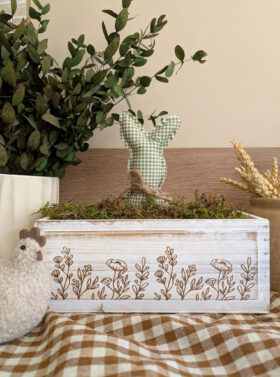Ajouter au panierJardinière rectangulaire en bois blanchi – Motifs floraux avec protection plastique