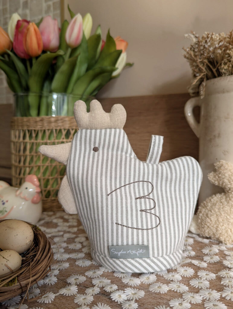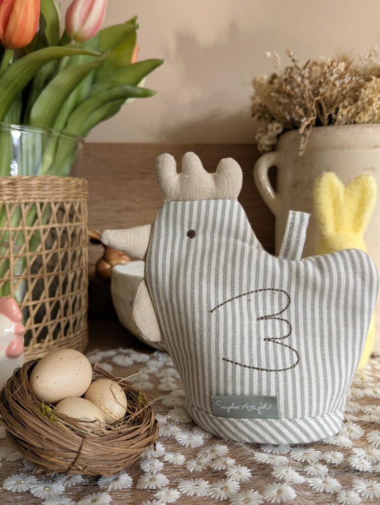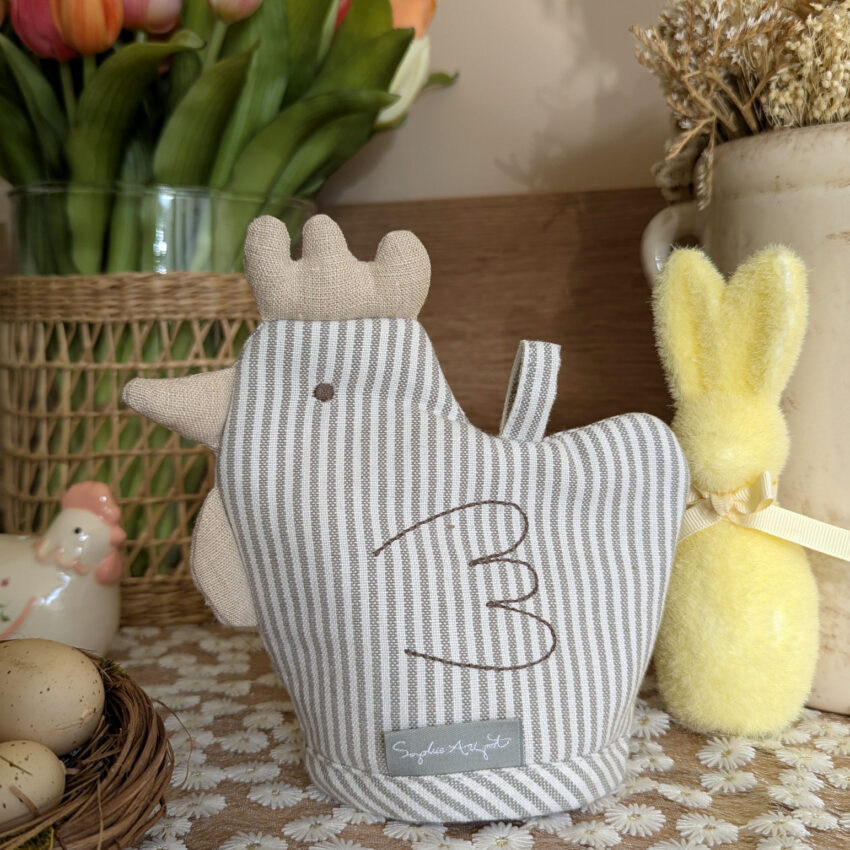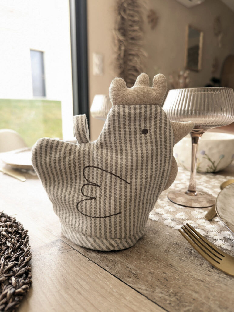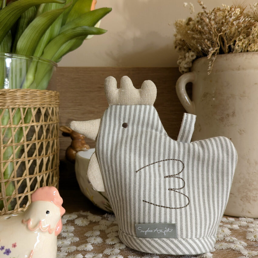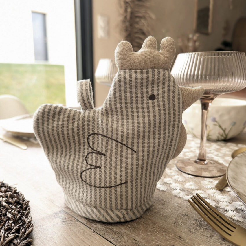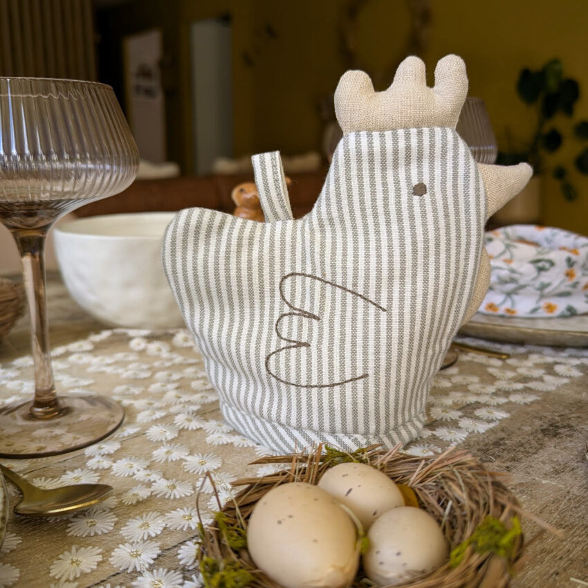 Ajoutez une touche de charme à votre table avec ce couvre-œuf en forme de cocotte agrémenté de délicates rayures🐥!