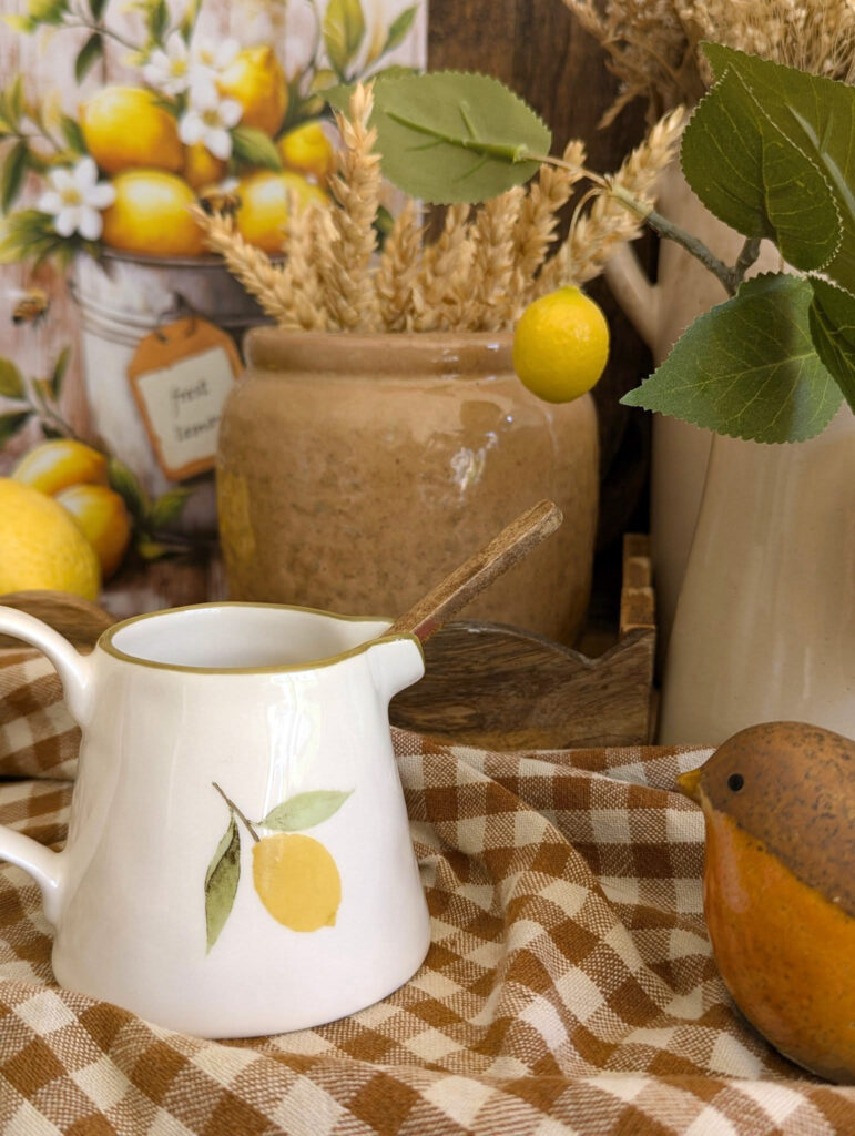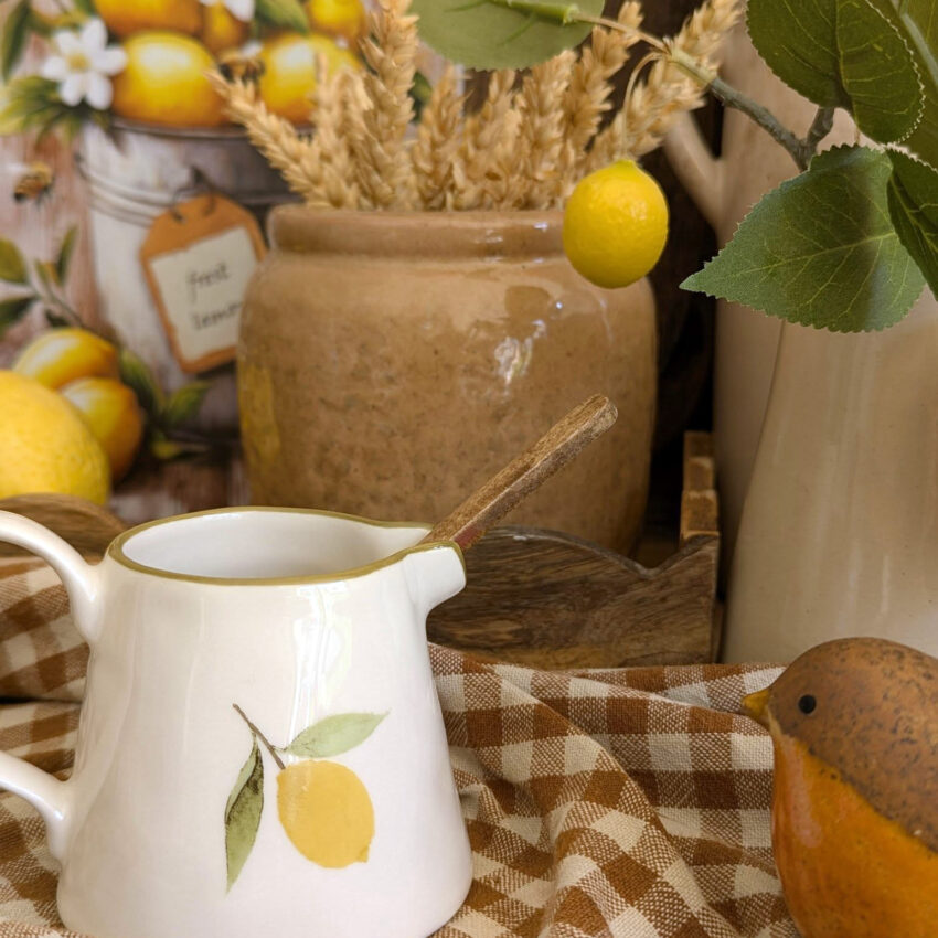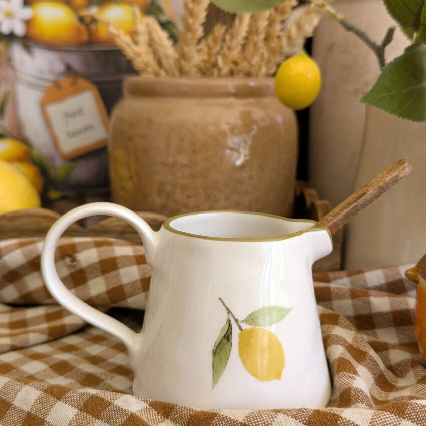 Apportez une touche de gaieté à vos repas avec ce mini pichet en céramique décoré d’un délicat motif citron🍋!