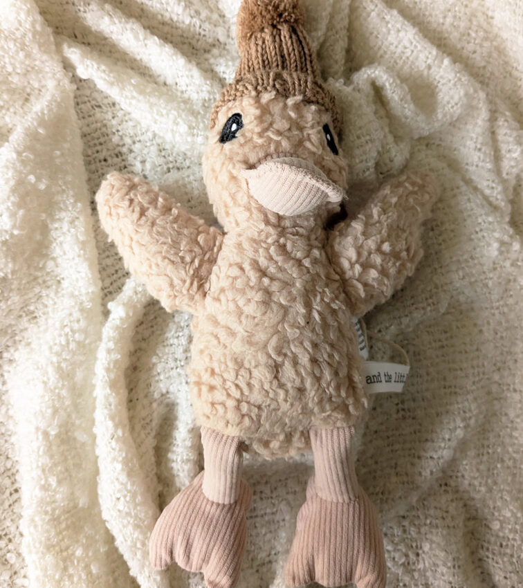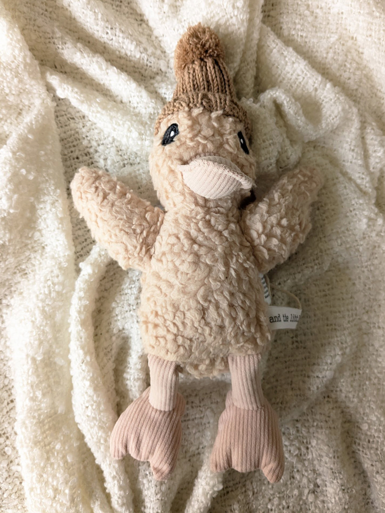 Offrez à votre petit trésor un compagnon de jeu et de câlins irrésistible avec notre peluche en sherpa en forme de canard « Poppy »🐥!